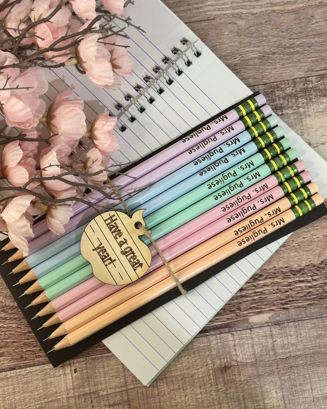 Set of 5 Custom engraved pencils in pastel colors
